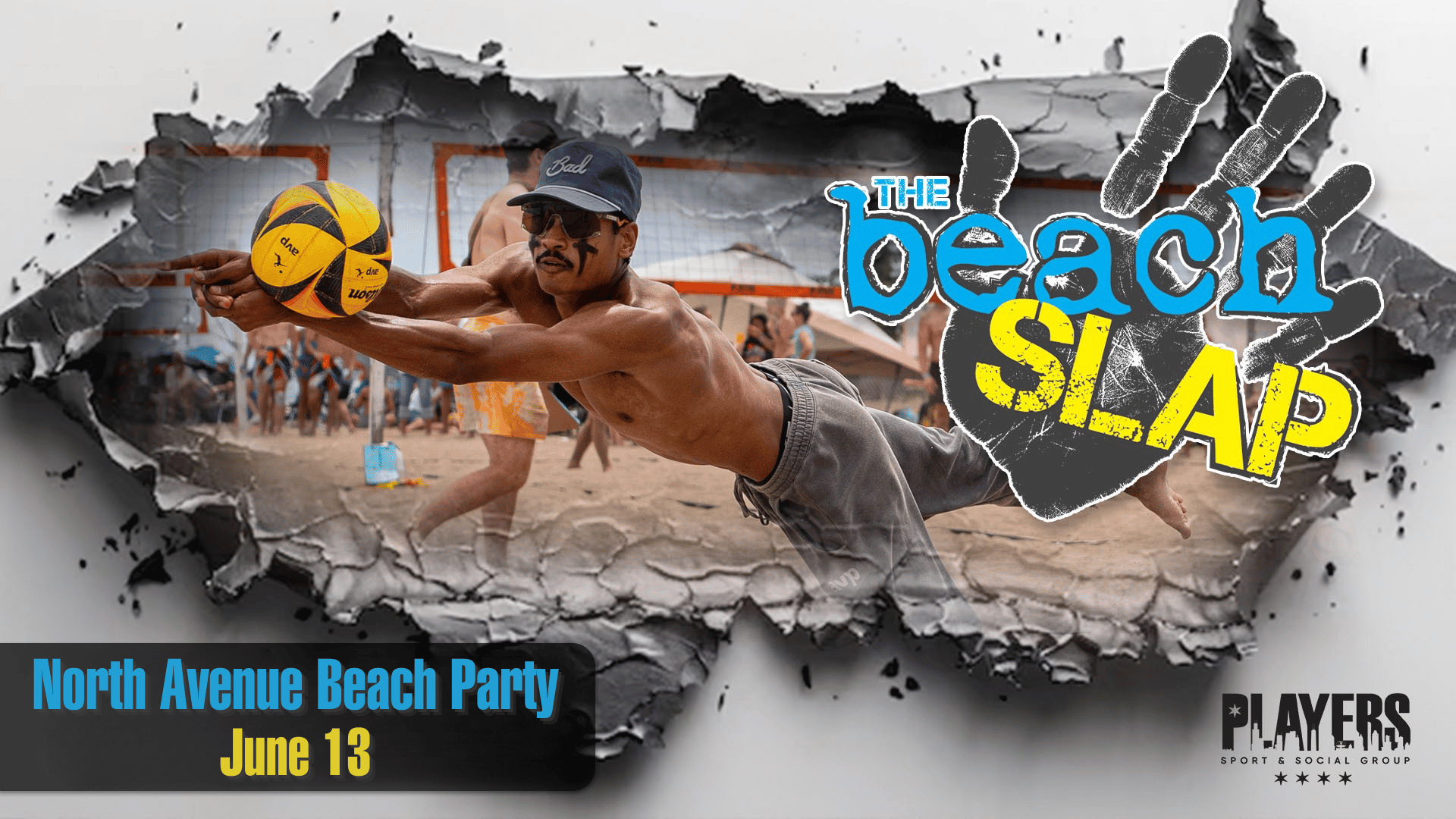What better way to kick-off the summer season than with a party at North Ave Beach! Join Players Sport & Social Group on Saturday, June 13th, 2026 for our annual Beach Slap Volleyball Tournament & Beach Party!
